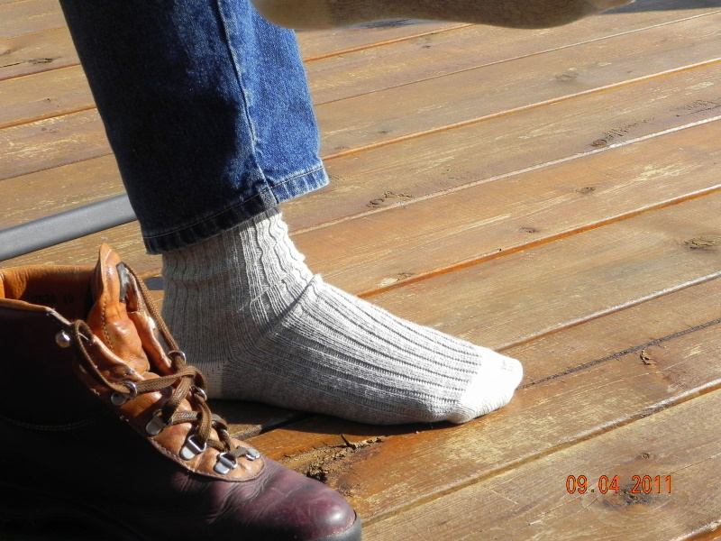 Le pied de ma chum heureuse de laisser choir un peu sa botte de randonnée…