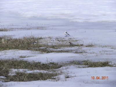 Bruant des neiges…oui je sais il se fond pas mal sur la neige, on ne le voit pas très bien. Je ne suis pas photographe professionnelle malheureusement.