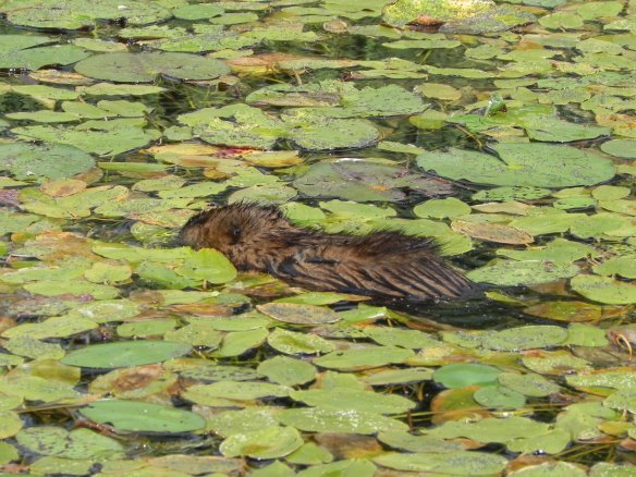En attendant le dîner du brochet le rat musqué prend son déjeuner.