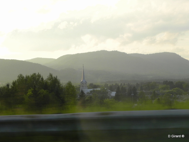 Par la fenêtre…sur la route…l’église  On risquait de croiser des cyclistes en bordure de la route…Bientôt l’Ironman à TremblantUn coucher d’ensoleillement… Le lendemain la nature nous attendaitPetite maman doit bien se nourrir…pour bien nourrir sa progéniture…Tamia (Suisse) à l’affût des graines d’oiseaux qui tombent du ciel…