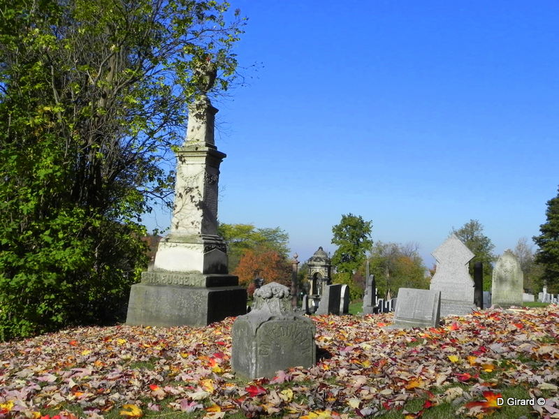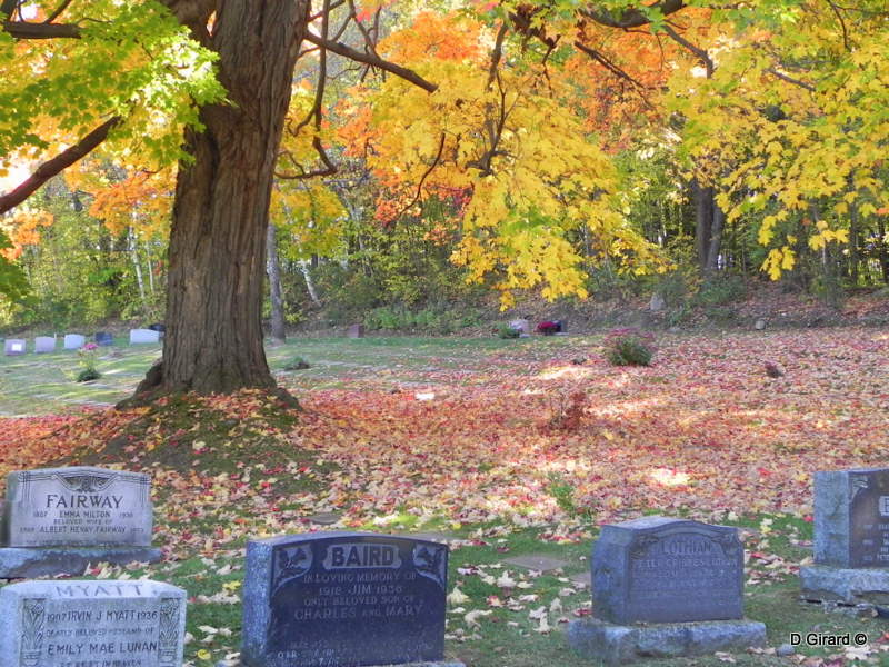 Le vent est doux au cimetière, les feuilles volent éclatantes,