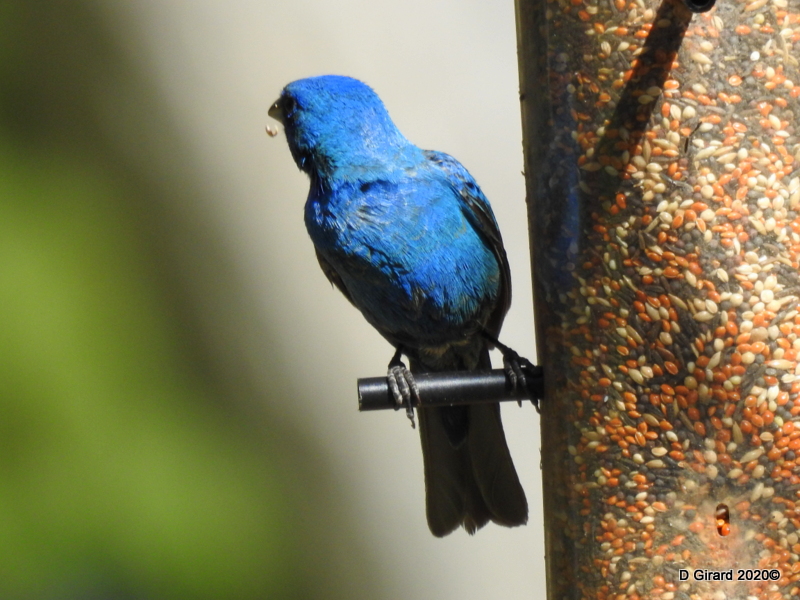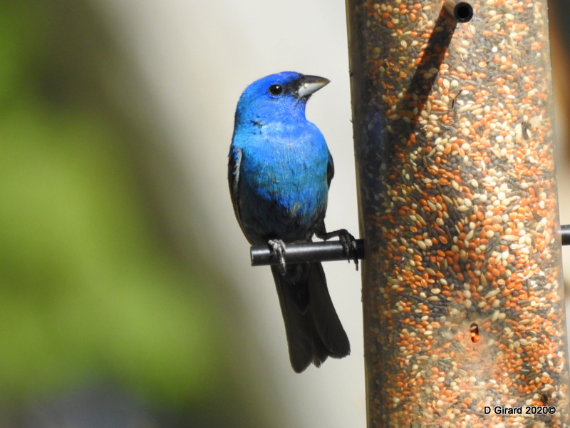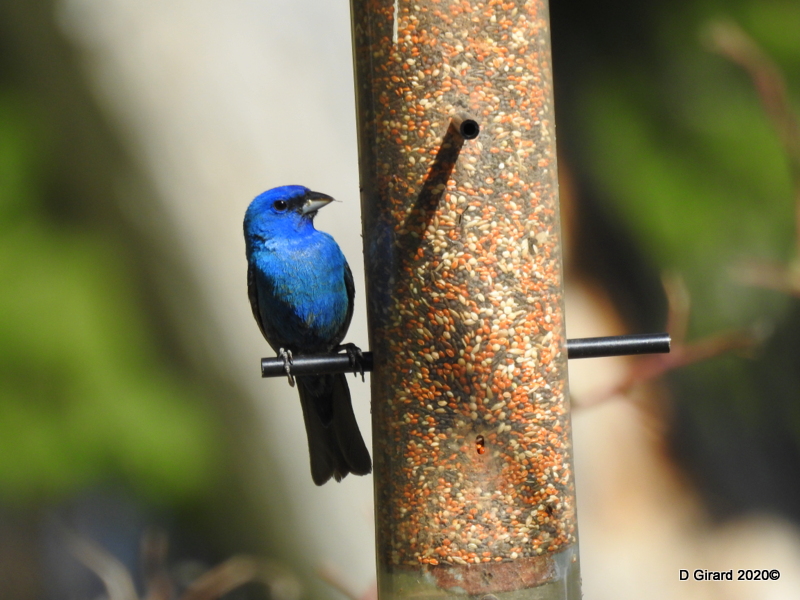 Je ne sais pas si c’est la faute du ciel ou celle de l’océan, mais le bleu est ma couleur préférée. Il y a quelques jours, dans les Laurentides, à notre maison de campagne, un passerin indigo est venu m’éblouir. Il ne s’arrête pas souvent faire son tour. Je crois l’avoir aperçu la dernière fois (ou première ?) vers l’an 2004. Ce petit oiseau est à couper le souffle tant il est joli, mignon et spectaculaire. Je vais me croiser les doigts d’avoir la chance de pouvoir le revoir dans un avenir rapproché… non pas dans plus de 15 ans...