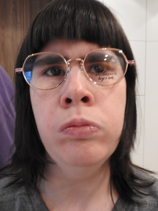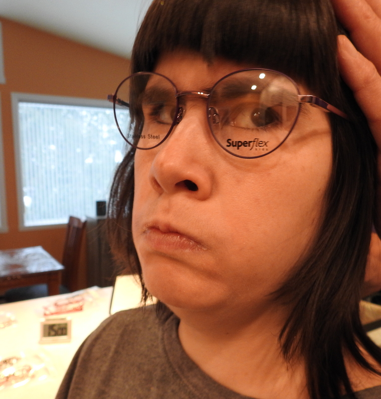 Ma fille n’aime pas déteste vraiment essayer des montures de lunettes. Je vous offre la preuve en photos.