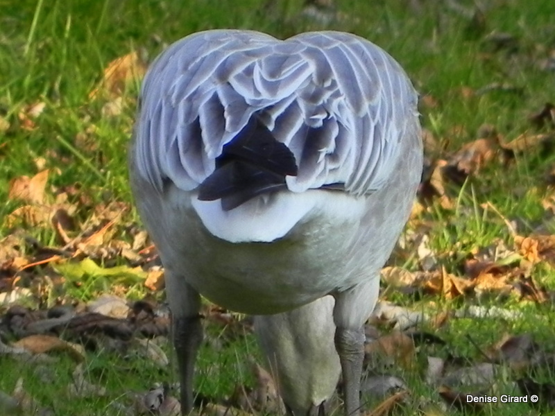 Elle était seule à l’automne 2015 sur notre terrain dans les Laurentides. Nous sommes arrivés une fin de semaine et elle était là. Sortie de nulle part. Nous voyons souvent des bernaches du Canada mais c’était bien la première fois que l’on pouvait observer une oie des neiges juvénile de si près. Je crois que c’est plutôt rare que ça arrive dans la région de Mont-Laurier.